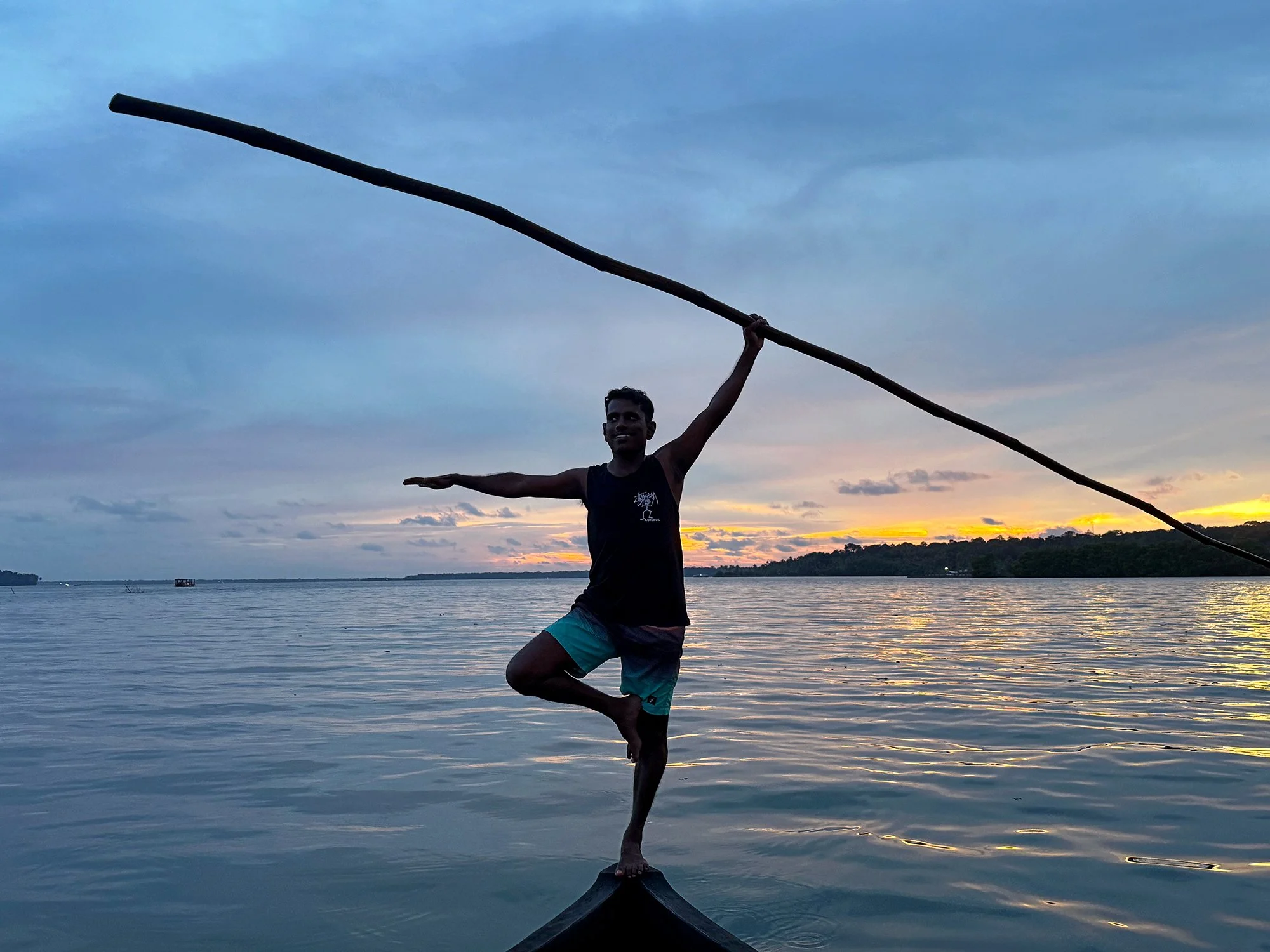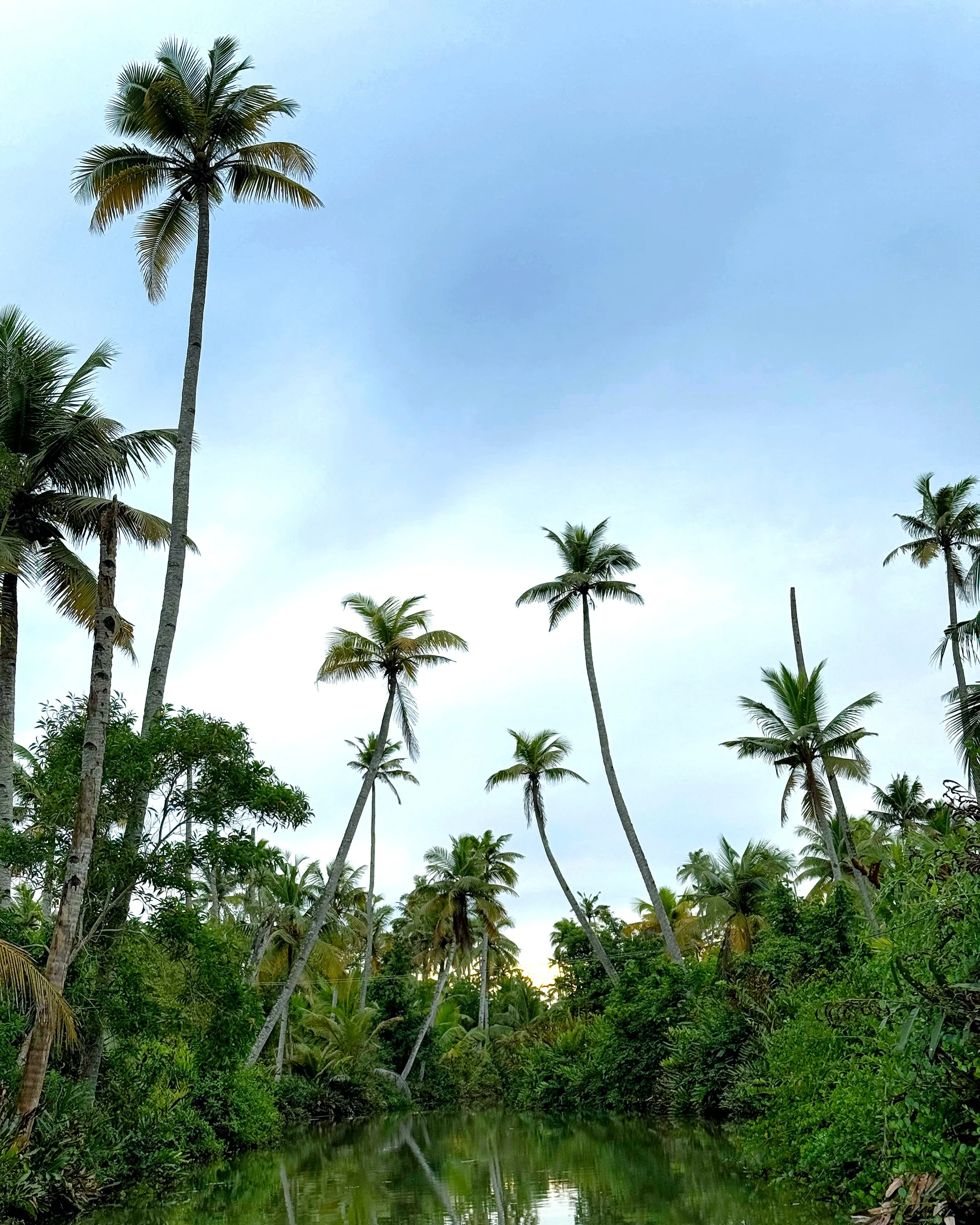 One of the biggest draws of staying at this particular homestay is that Vijeesh and his father are experienced boatmen and offer to take guests out on the backwaters for both sunrise and sunset excursions. Vijeesh propelled the wooden canoe while standing on its stern with a long wooden stick, constantly pointing out different birds and plants. One fruit that looked like a mango was dubbed the “suicide fruit,” as it was incredibly poisonous. “It’s the most delicious fruit you will ever eat,” Visjeesh explained, “but you only get to eat it once.”