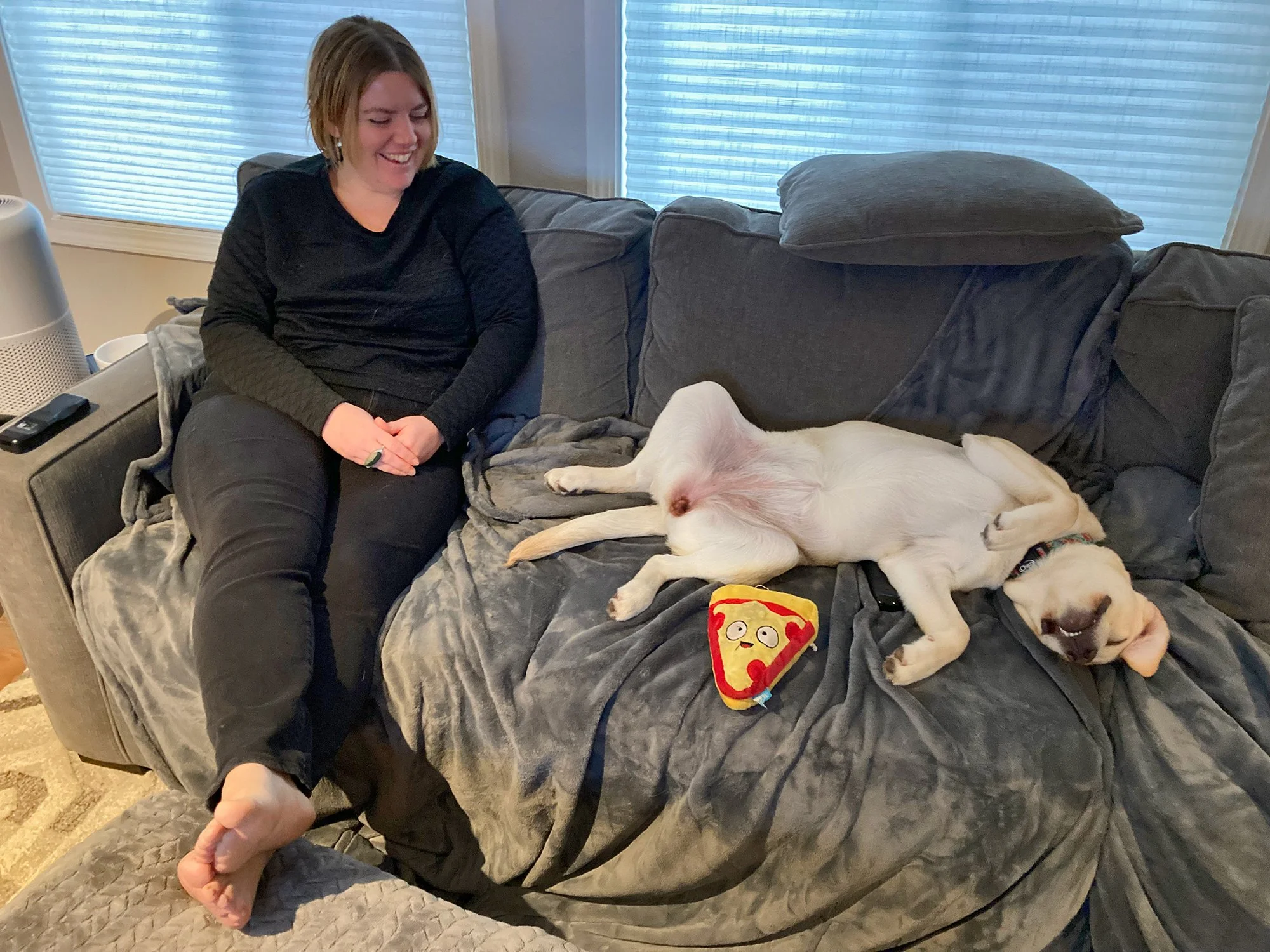 Ruby was just a puppy when we last came home in 2019, and in that time her body has grown but her intellect has not. She has true dinosaur brain. She will stare at you dead in the eyes and cry at nothing; what she wants or needs is anyone’s guess. Like Desi, she is a large dog that wants to live on your lap. Thankfully she’s done constantly biting, but she does want to lick every exposed bit of skin on your body.